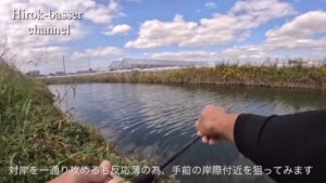 一旦、対岸へのキャストを数回繰り返した後に、再び、同じポイントへルアーを投げ入れてみます。
